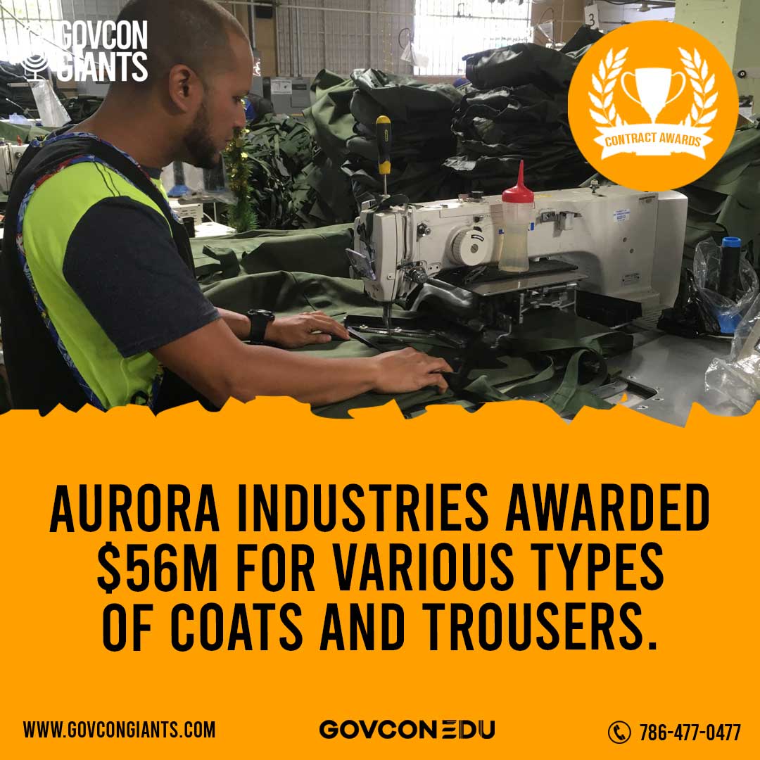 Aurora Industries Awarded $56M for various types of coats and trousers.
