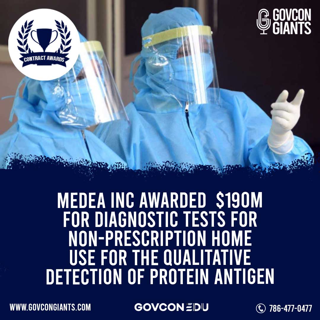 Medea Inc Awarded $190M for diagnostic tests for non-prescription home use for the qualitative detection of protein antigen