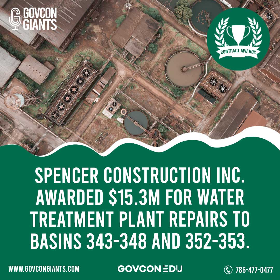 Spencer Construction Inc.Awarded $15.3M for water treatment plant repairs to Basins 343-348 and 352-353