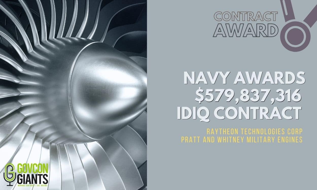 Raytheon Technologies Corp. and Pratt and Whitney Military Engines Awarded a $579,837,316 IDIQ Contract