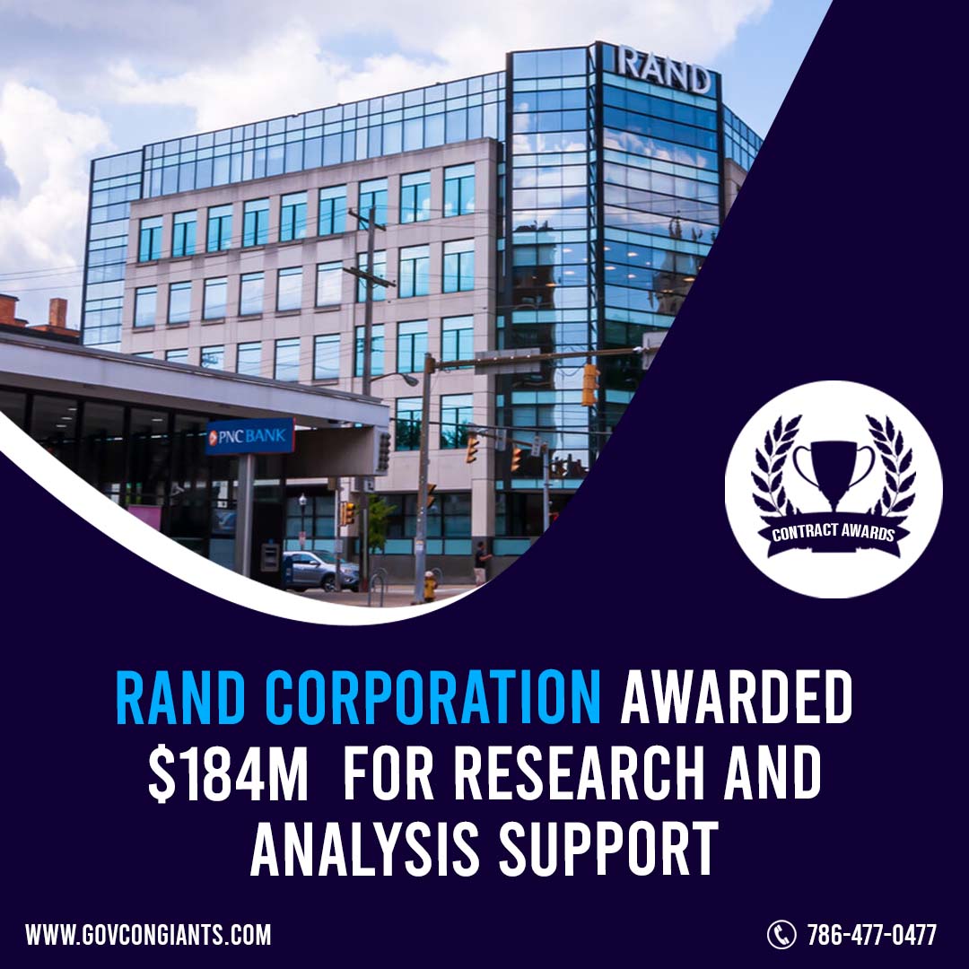 The RAND Corporation., Santa Monica, California, was awarded a $184,246,908 cost-plus-fixed-fee contract for research and analysis support. Bids were solicited via the internet with one received. Work locations and funding will be determined with each order, with an estimated completion date of Sept. 20, 2030. U.S. Army Contracting Command, Aberdeen Proving Ground, Maryland, is the contracting activity (W91CRB-21-D-0025).